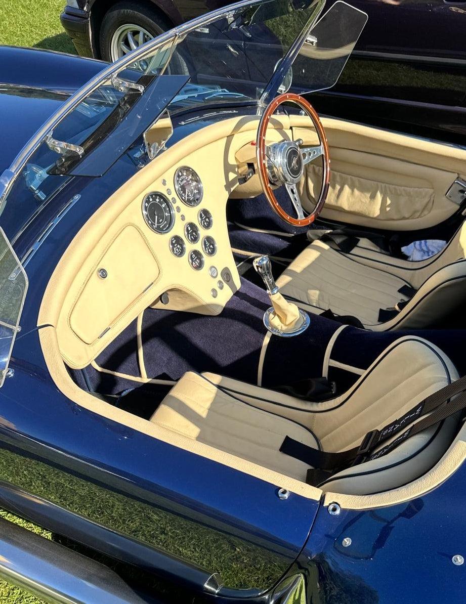 Interior mirror, 155mm x 63mm: diecast/bright arm, stainless steel back. Universal. Can be fitted to dash top or suspended over the windscreen. A very popular mirror for the Austin Healey, Sprite, Cobra kit cars etc. The fixing centres for the base is 38mm.